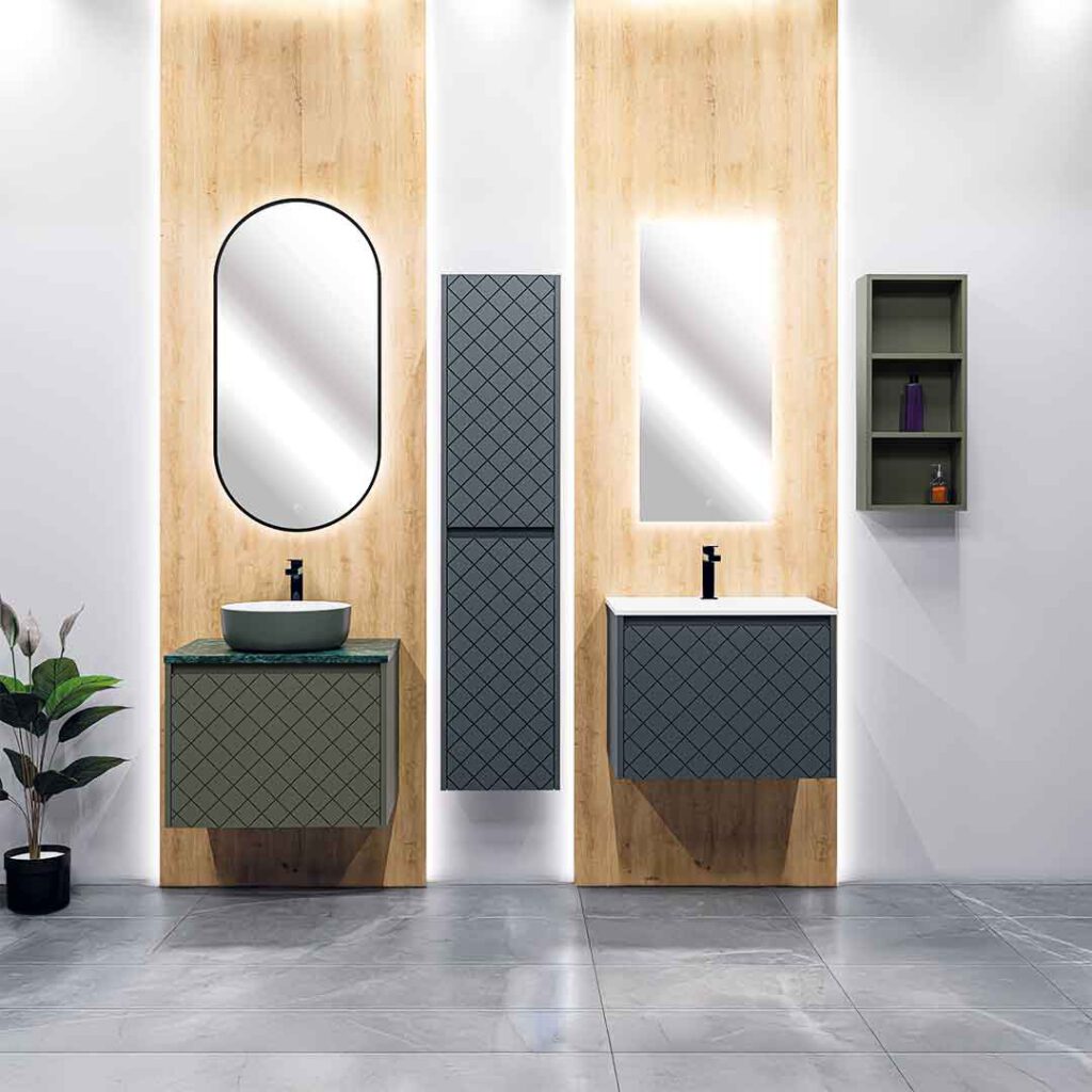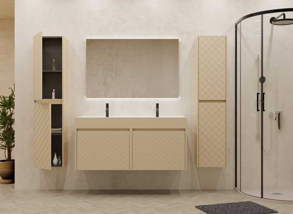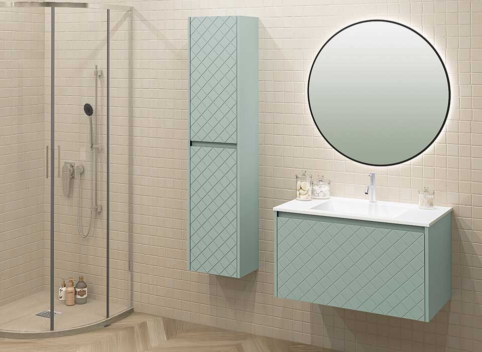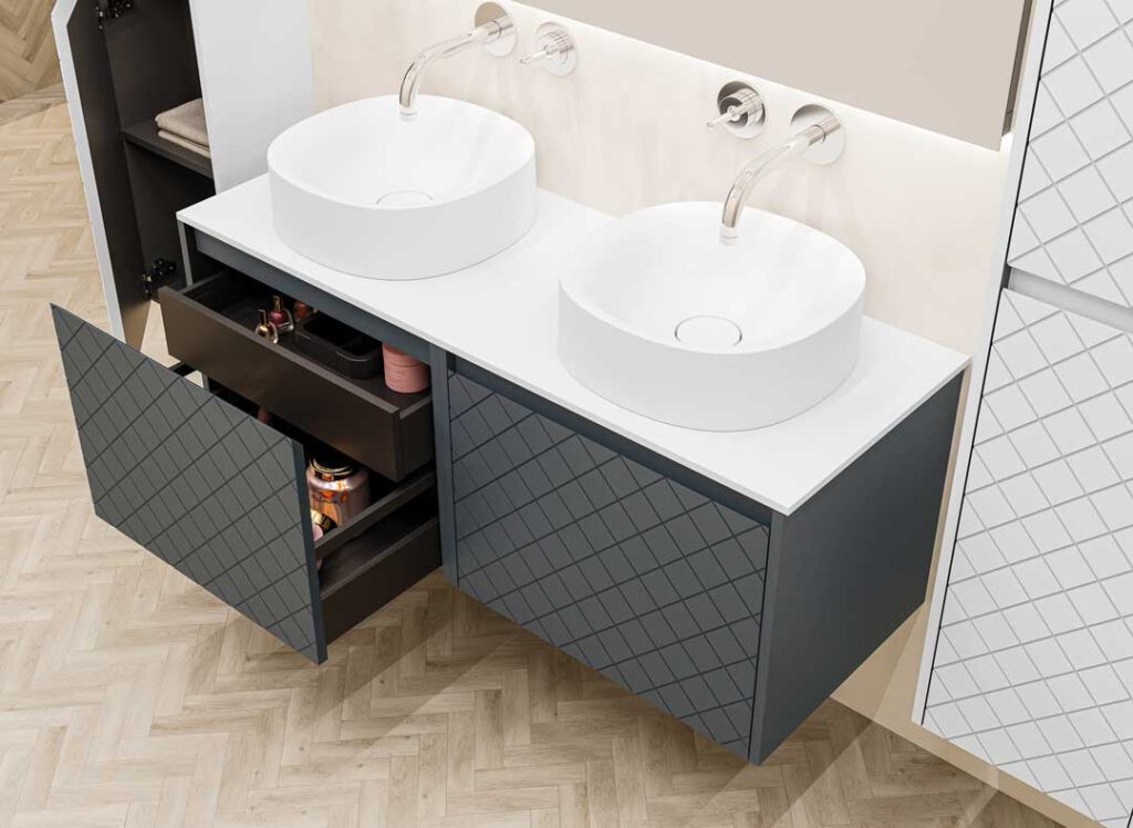 El mueble de baño Diamante combina un diseño audaz con una funcionalidad esencial para el día a día. Combínalo con la Columna a juego, la solución vertical que complementa la estética sin sobrecargar la pared.