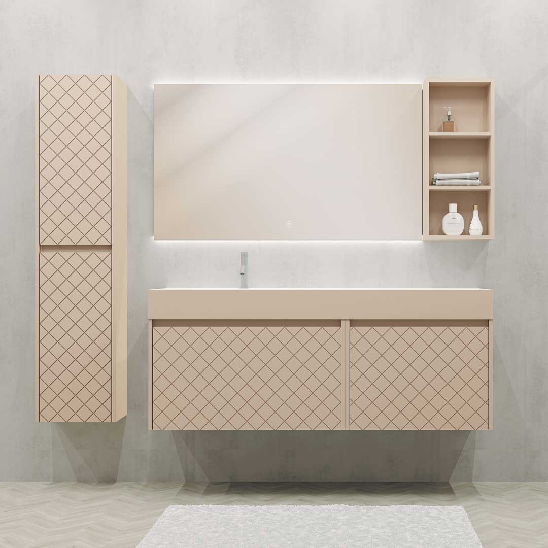 El mueble de baño Diamante combina un diseño audaz con una funcionalidad esencial para el día a día. Combínalo con la Columna a juego, la solución vertical que complementa la estética sin sobrecargar la pared.