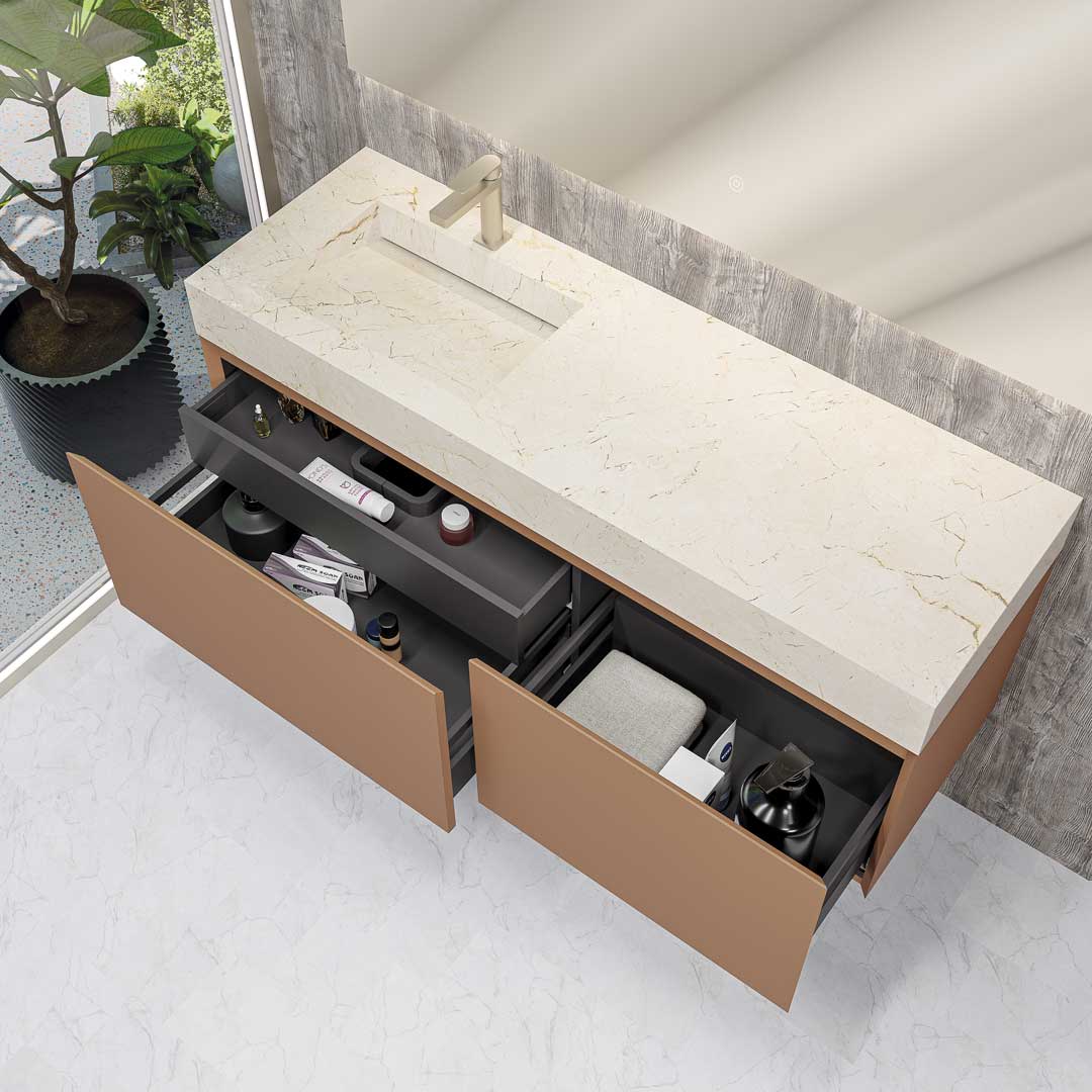 Descubre la Colección Marina, la solución de mobiliario de baño diseñada para quienes valoran tanto la estética impecable como la funcionalidad sin fisuras. Con su diseño suspendido y líneas minimalistas, Marina libera espacio visualmente mientras ofrece una capacidad de almacenamiento sorprendente y perfectamente organizada.